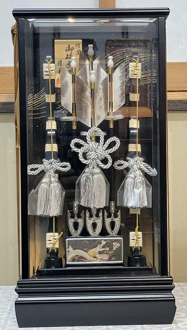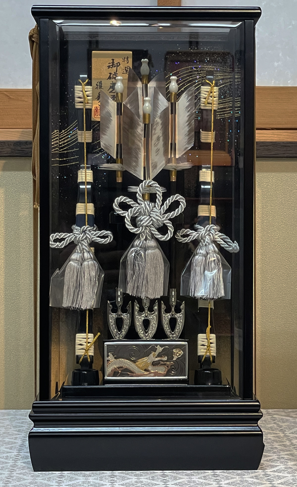 華やかさのある破魔弓飾りです。